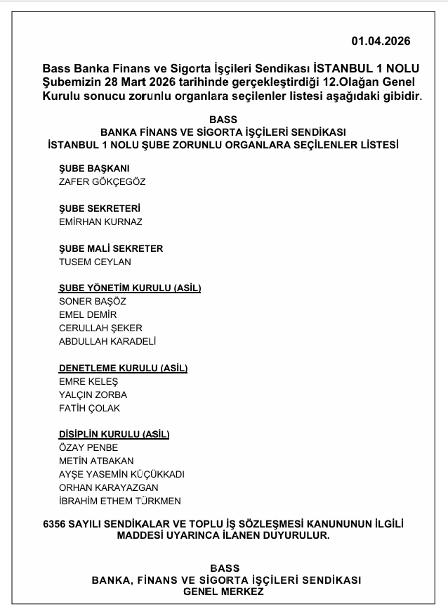 Sendikamızdan düzenli olarak güncellemeler almak için e-posta bültenimize kayıt olun.