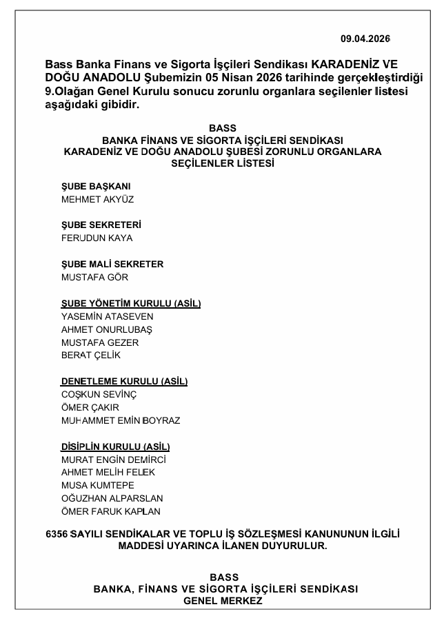Sendikamızdan düzenli olarak güncellemeler almak için e-posta bültenimize kayıt olun.