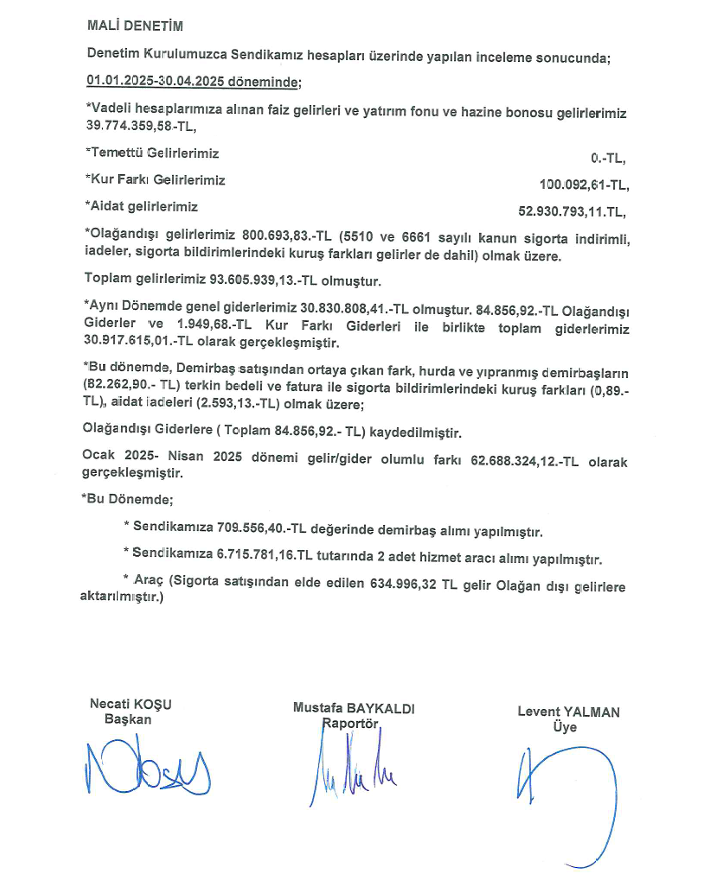 Denetleme Kurulumuz Ocak – Nisan 2025 dönem incelemesini tamamladı.