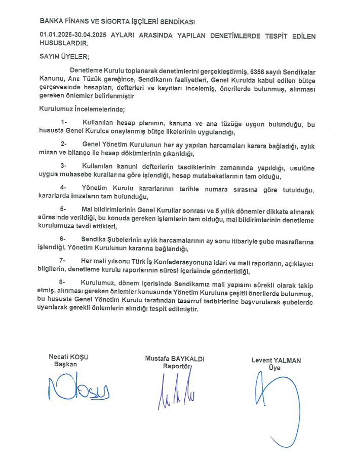Denetleme Kurulumuz Ocak – Nisan 2025 dönem incelemesini tamamladı. | Bass