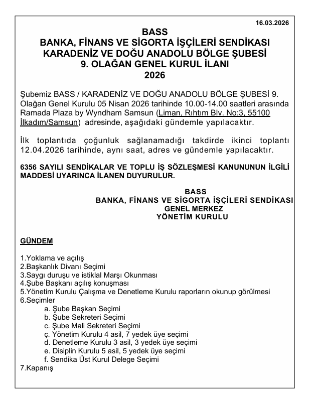 Sendikamızdan düzenli olarak güncellemeler almak için e-posta bültenimize kayıt olun.